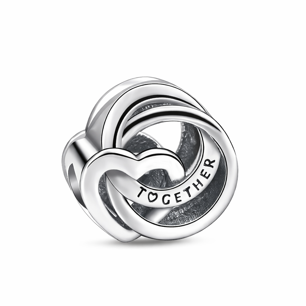 Charm από Ασήμι 925, με διαπλεκόμενες καρδιές και χάραξη “Together”. Ιδανικό κόσμημα που συμβολίζει την αγάπη και την ενότητα.