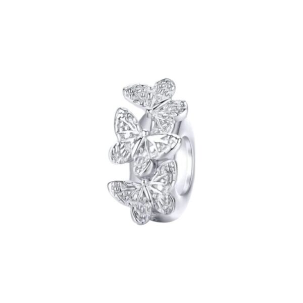 Το εντυπωσιακό αυτό charm είναι κατασκευασμένο από Ασήμι 925, σχεδιασμένο για να προσθέτει λάμψη σε κάθε κόσμημα. Εντυπωσιακό ασημένιο charm διακοσμημένο με τρεις ανάγλυφες πεταλούδες σε τρισδιάστατη διάταξη. Το λεπτομερές σχέδιο στα φτερά αναδεικνύει τη δεξιοτεχνία της κατασκευής και δημιουργεί ένα κομψό παιχνίδι φωτός και σκιάς.