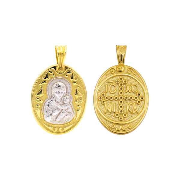 Κωνσταντινάτο με την Παναγία. Φυλαχτό δύο όψεων από επιχρυσωμένο Ασήμι 925 και ασημένιες λεπτομέρειες. Ένα πολύτιμο και μοναδικό κόσμημα.