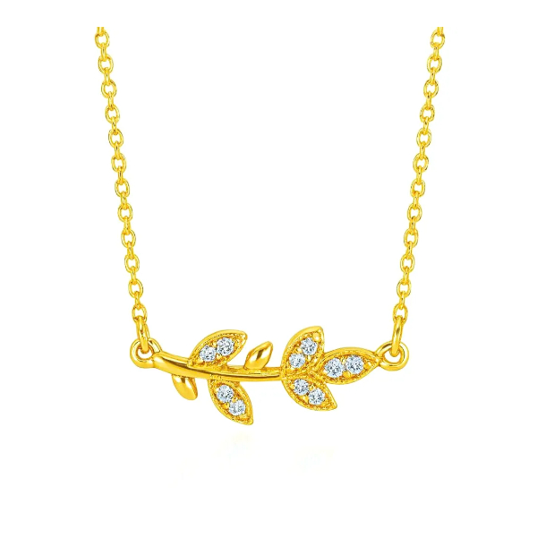 “Leaf” – Κολιέ με Φύλλα Ελιάς και Ζιργκόν