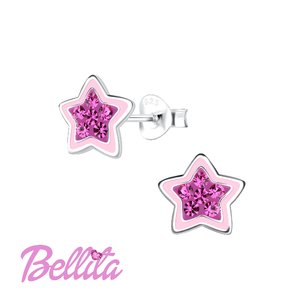 Λαμπερά και παιχνιδιάρικα σκουλαρίκια σε σχήμα αστεριού, σχεδιασμένα ειδικά για μικρές πριγκίπισσες. Διακοσμημένα με αστραφτερά ροζ κρύσταλλα στο κέντρο και περιμετρικό πλαίσιο σε απαλό ροζ σμάλτο, προσφέρουν γλυκό παιδικό στυλ με κομψότητα Bellita. Κατασκευασμένα από υποαλλεργικό ασήμι 925, είναι απόλυτα ασφαλή για ευαίσθητα παιδικά αυτάκια και κατάλληλα για καθημερινή χρήση ή ιδιαίτερες εμφανίσεις.